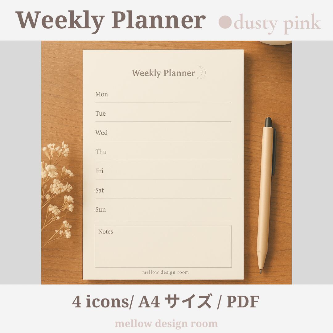 やわらかく上品な ダスティピンクのWeekly Planner(週間スケジュール表)です。