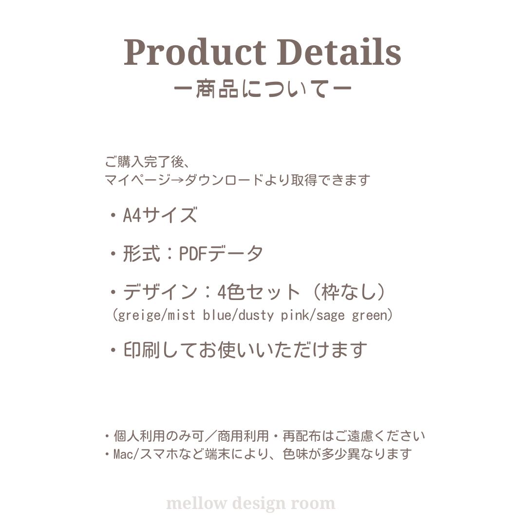 Greige / Mist Blue / Sage green/ Dusty Pink の4色セット。